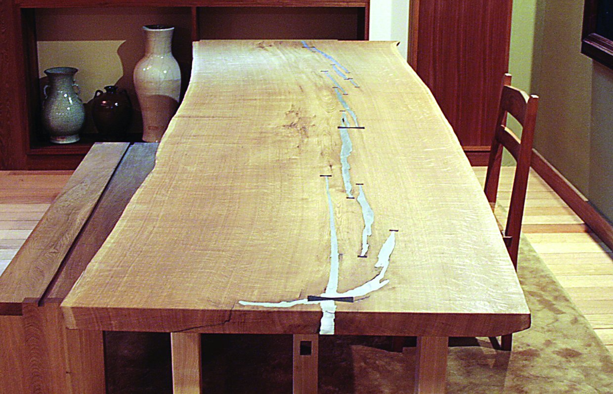 割れている部分に錫(すず)を流し込んだ存在感のあるテーブル。