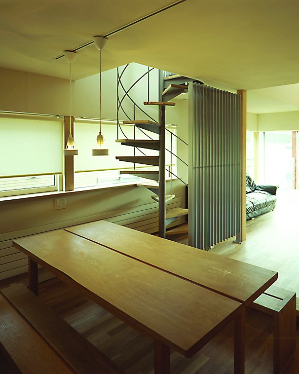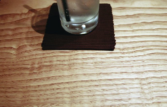接ぎ位置を斜めにし、接着せずに接いだ天然面付材。自然味溢れる印象的なテーブル。