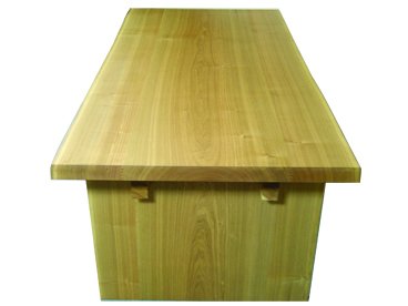 天板の厚みは、25㎜くらいから100㎜を超す厚いものまで、好みで選べます。無垢材は、巾が広くて厚みが薄いと反りやすく、巾が狭くて厚みが厚いと反りにくい性質があります。あまり薄い天板は、反るリスクが高くなります。薄い天板ほど、反り止めが必要です。