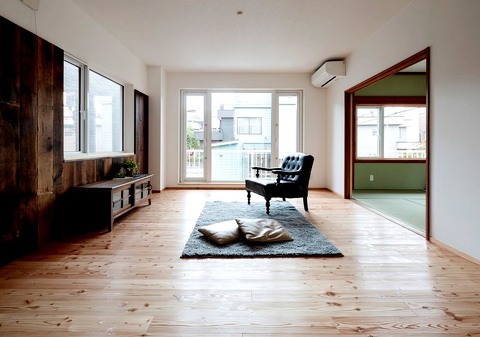 暖かさの確保と同時に暖房計画では、薪ストーブのある空間の趣を壊さないようにと、澤田さんが床暖房を提案。白さが目立ってしまう暖房パネルのない、居心地のよいリビングが実現しました。
