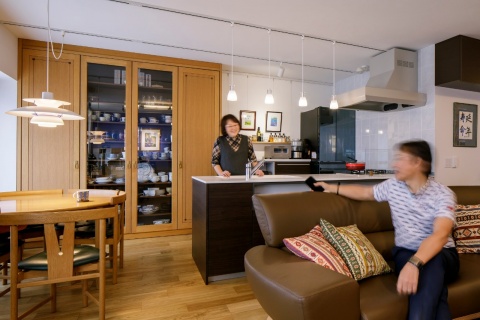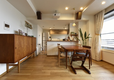 絶対叶えたかった天然木の床をはじめ、自分たちの希望に応えようと一緒に考えてくれた会社がハガ木材さんでした。初めて会ったとは思えないほど親身に相談に乗ってくれ、信頼できると思いました。子供の独立とリタイアを機に、3LDKだった間取りの壁を全て撤去してワンルームに改造する、大胆なスケルトンリフォームで手に入れた空間で理想どうりの暮らしのカタチが実現しました。