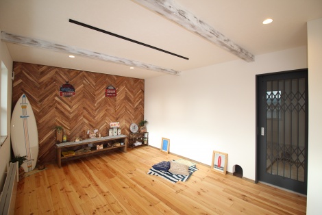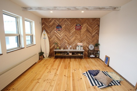 函館の街を連想させる、雪の白と海の水色をベースにしたサーファーズテイストのリノベーションNorth Shoreです。内装も色使いにも特徴があり、海の香りを感じられます。無垢の木材を使ってエイジング加工や塗装にてその特徴を表現しています。雑貨や植物を置く楽しみも増える素敵なリノベーションです。リビングルームにサーフボードを置いてもイイですね。お客様の趣味に合わせて様々な変化をもたらす事もできる面白さがあるリノベーションがNorth Shoreです。