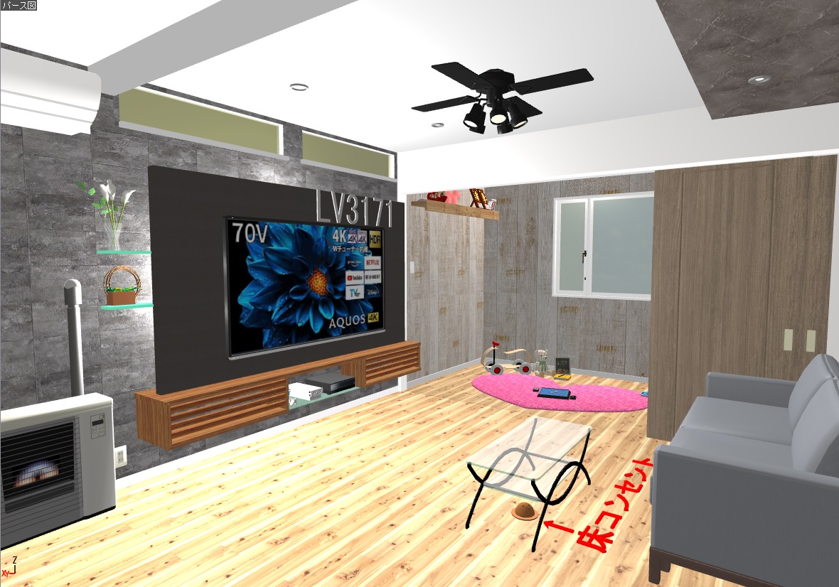 左にある画像は毎回の打合せで使う最新住宅ソフトの画像です。現在の図面や写真をお持ちいただければ、「部屋の間仕切りを無くして広くしたい」「おしゃれな空間にしてみたい」などのご希望をお話頂くだけで、理想のイメージをご一緒に作っていくことが可能です。作成したデータは無料のアプリでいつでも立体表示。指一本で部屋の中を仮想歩行出来ます。「こうしてみたい」をちょこっとリアルに再現してみませんか?