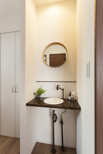 Case_5 おしゃれに魅せるトイレの外の手洗い器
